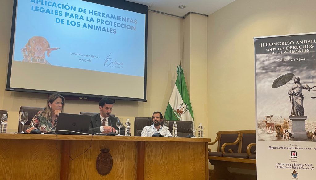La inauguración del evento estuvo a cargo de Sergio García Torres, Director General de Derechos de los Animales, Mar Hermano, Presidenta de la Comisión de Bienestar Animal y Medio Ambiente del ICAS y Lola García, Presidenta de AADA, Abogacía Andaluza por la Defensa Animal, y miembro de nuestro colectivo.
