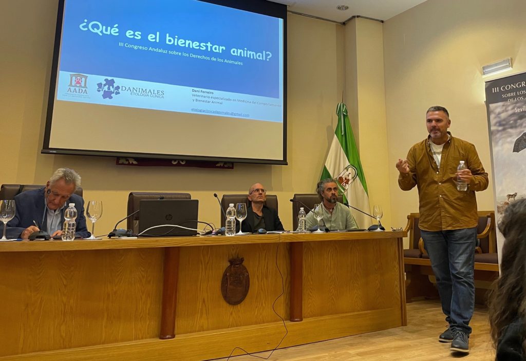 Las ponencias del congreso concluyeron con una mesa redonda en la que se trataron temas de gran interés y actualidad como la situación del lobo ibérico en Andalucía, a cargo del educador ambiental Juan Relañol, el bienestar animal desde el punto de vista de la etología, por el veterinario Daniel Ferreiro, la gestión de las cotorras por el ecólogo Enrique Figueroa y la situación de emergencia climática causada por la acción humana en los últimos 10.000 años, por el filósofo Jaime del Val.