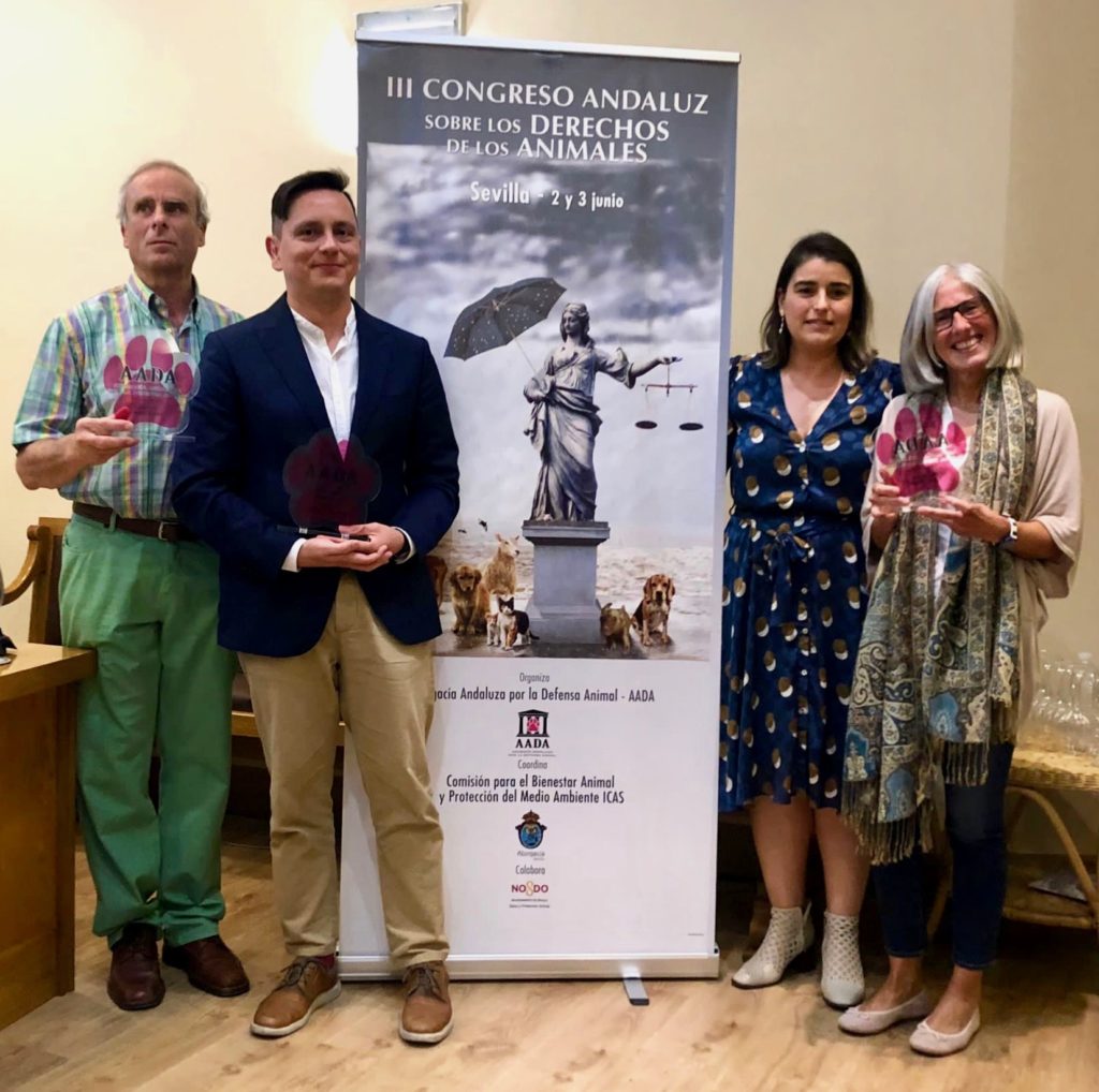 En esta edición, los premios concedidos por AADA recayeron sobre la asociación protectora Ghato Verde, sobre el abogado Carlos Contreras por el caso Vivotecnia y sobre la periodista y responsable de comunicación de nuestra entidad Lucía Arana por «Derecho y Animales, el podcast de INTERcids«.